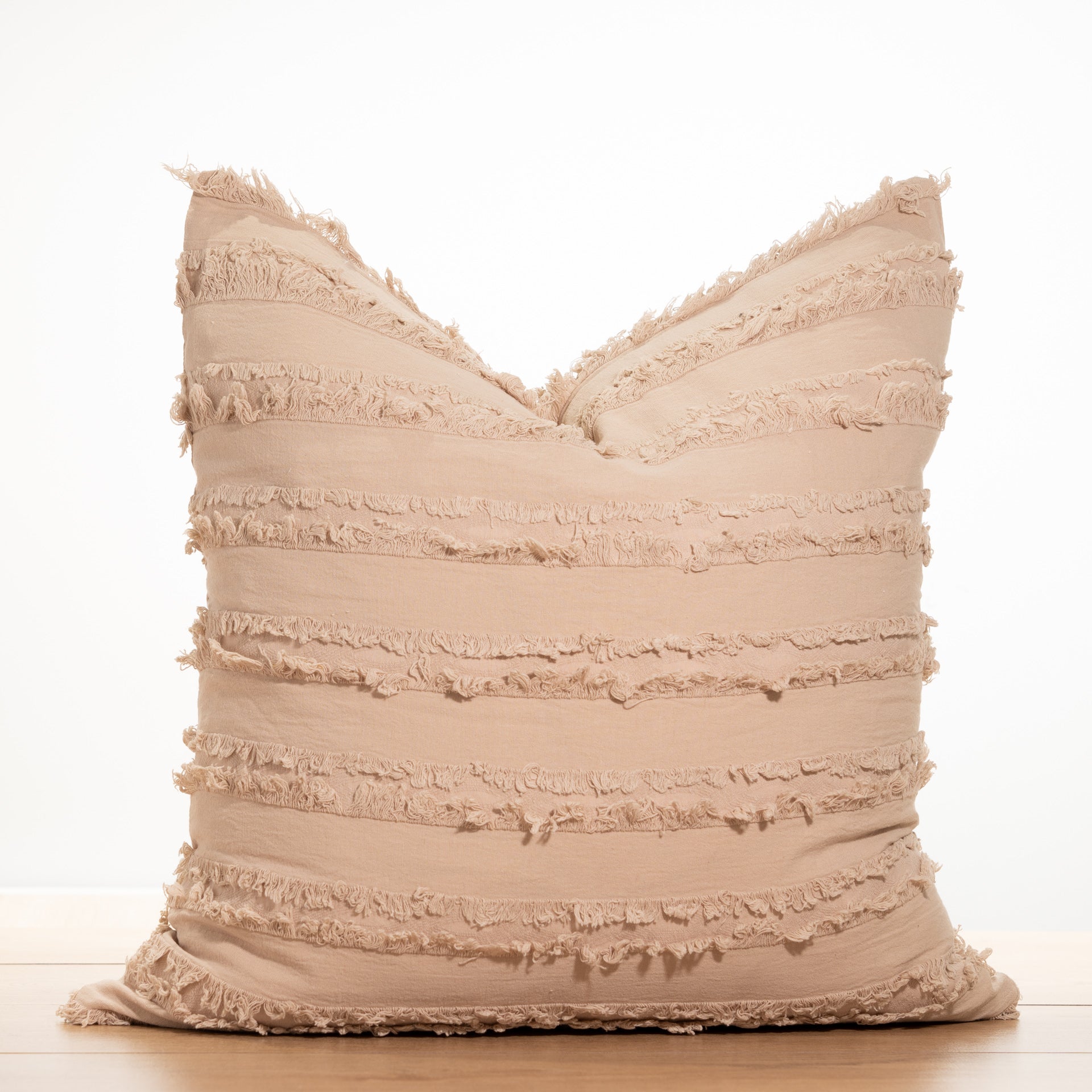 100% Linen with Handmade fringed edge, and hidden zipper in matching fabric colour